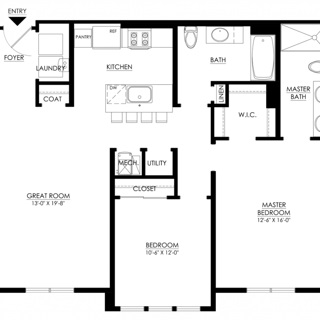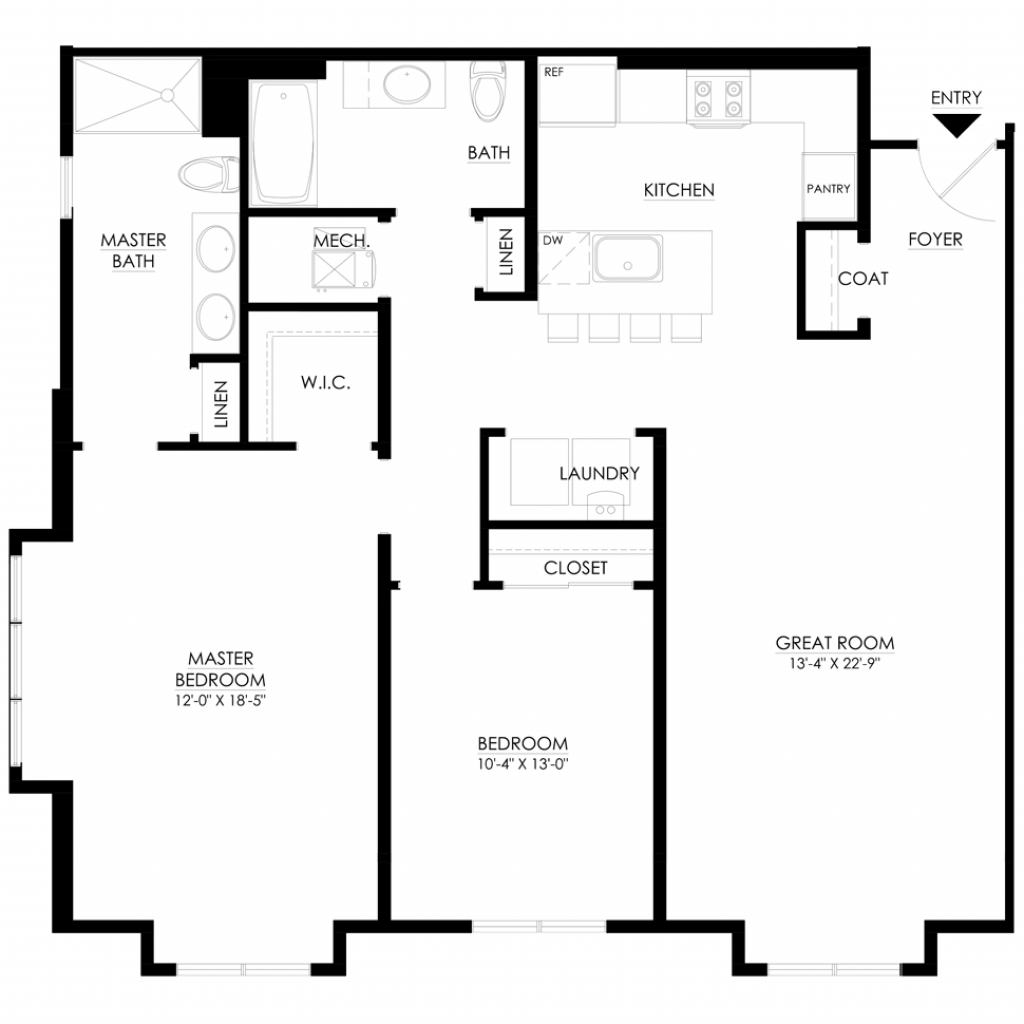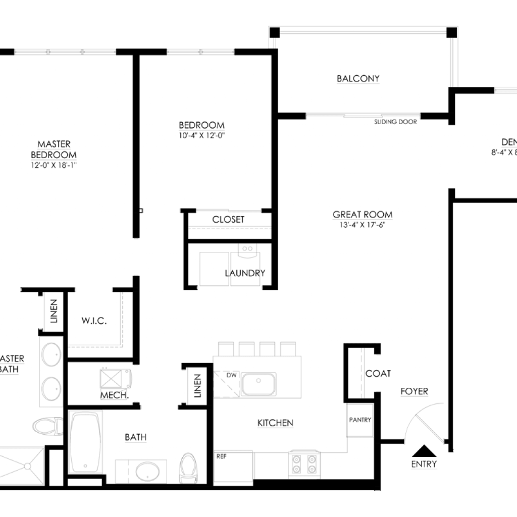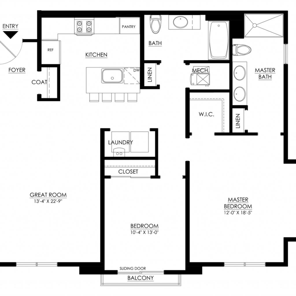 2 Bedroom, 2 Bath • 1,071 Sq. Ft. • Individual Private Storage