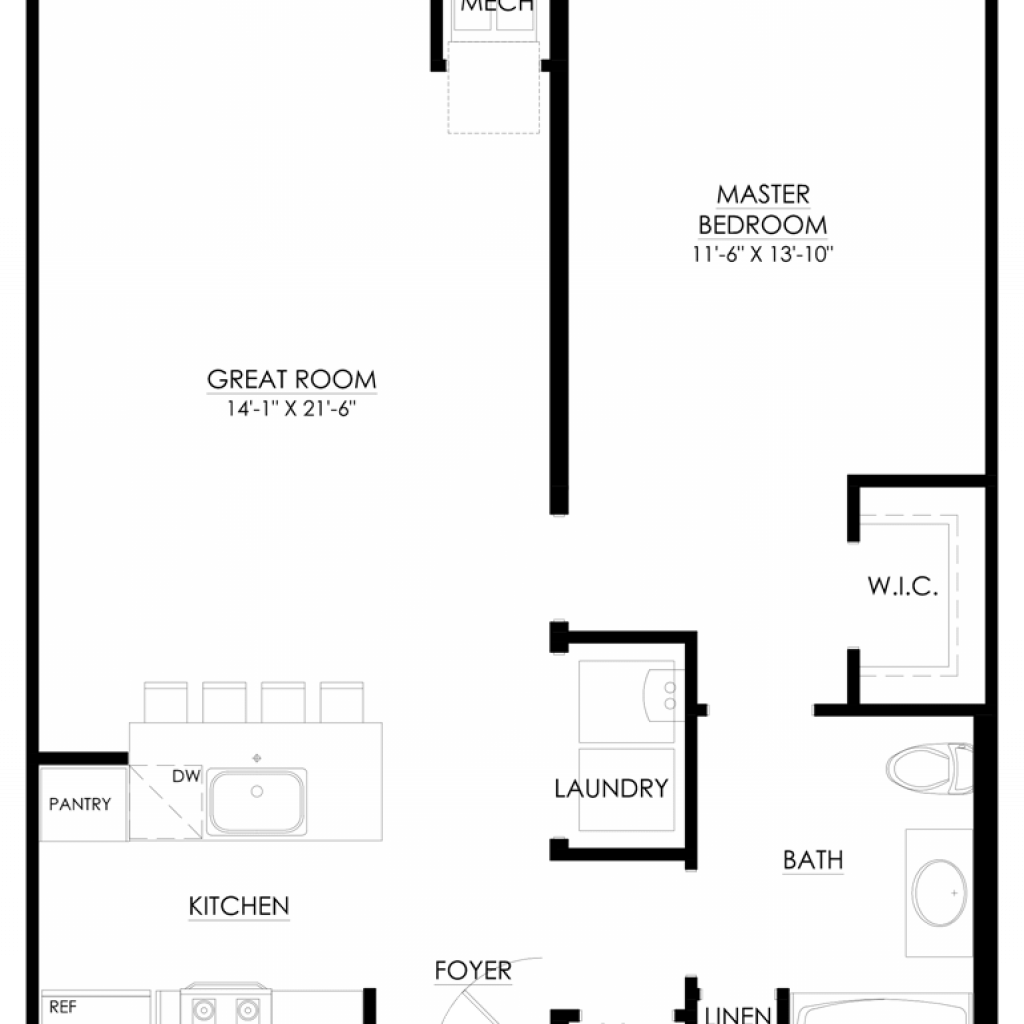 1 Bedroom, 1 Bath • 854 Sq. Ft. • Individual Private Storage