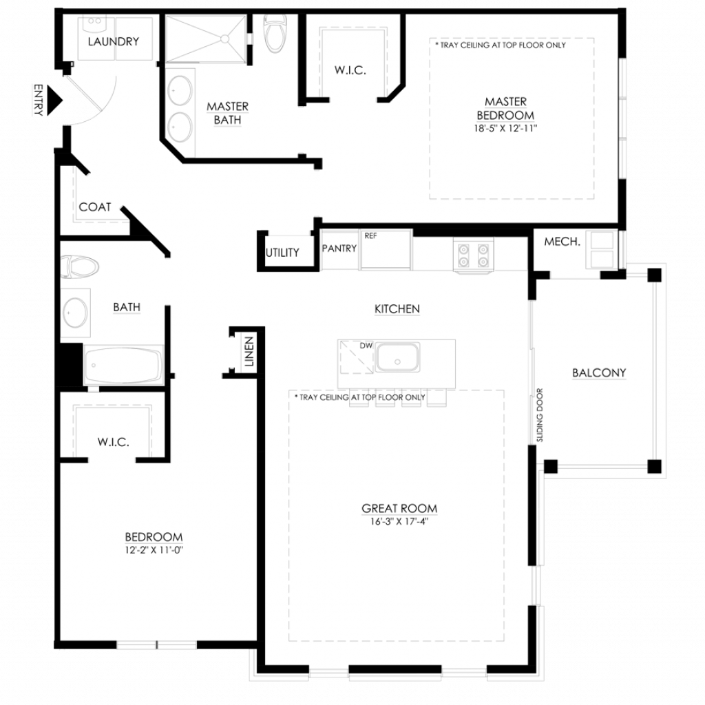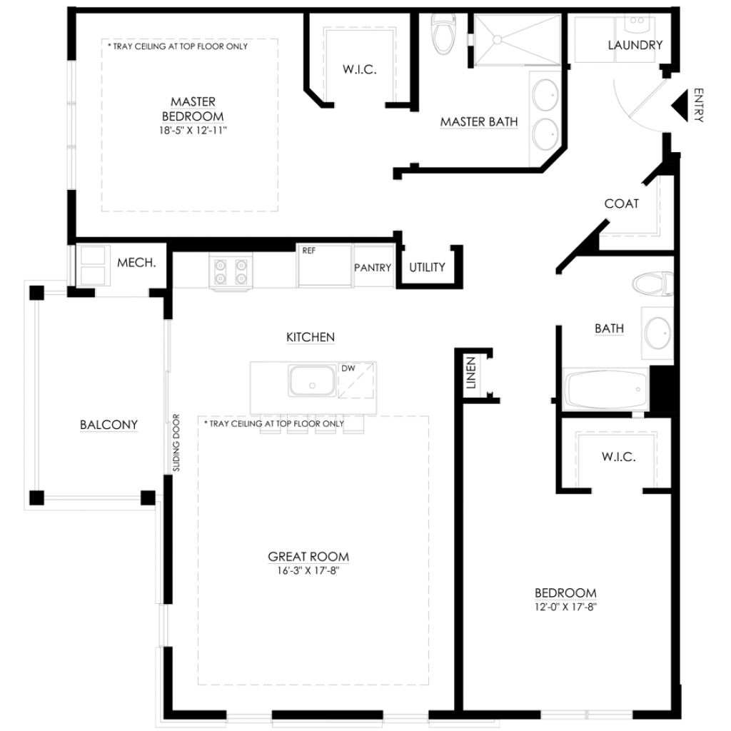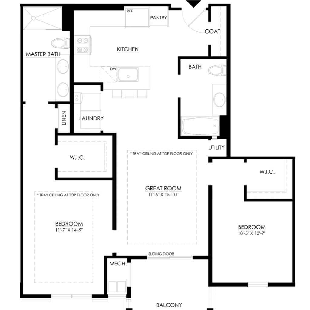 2 Bedroom, 2 Bath • 1,304 Sq. Ft. • Gated Private Garage
