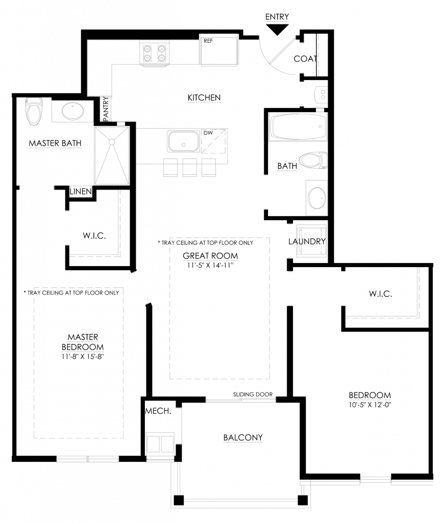 2 Bedroom, 2 Bath • 1,304 Sq. Ft. • Gated Parking Garage • Individual Private Storage